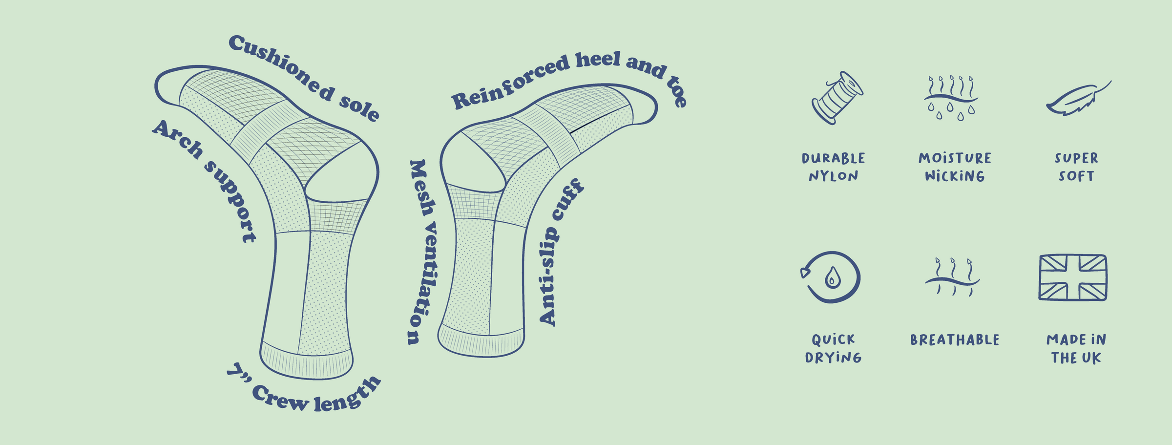 Whether it is a weekend bike packing epic or exploring your local lanes, our Black Stripe socks are designed to look and feel fresh, keeping your feet comfortable no matter what the day throws at you. Constructed using a durable nylon blend, this allows our socks to be breathable and fast drying, ideal for all your adventures.
