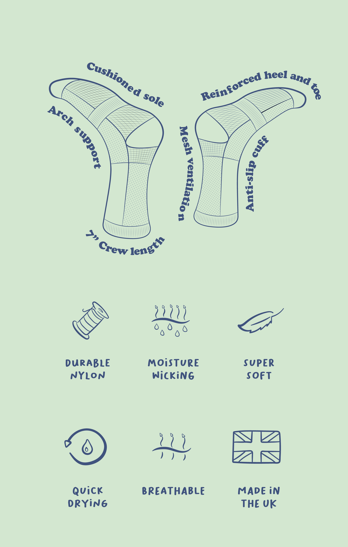 - Anti-slip cuff: ribbing ensures the socks stay up all day